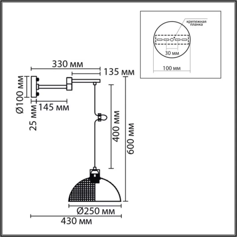 | Форма плафона/абажура | полушар |