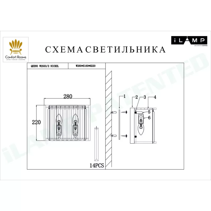 Стеклянное бра Qeens W2553-2 NIC прозрачное iLamp