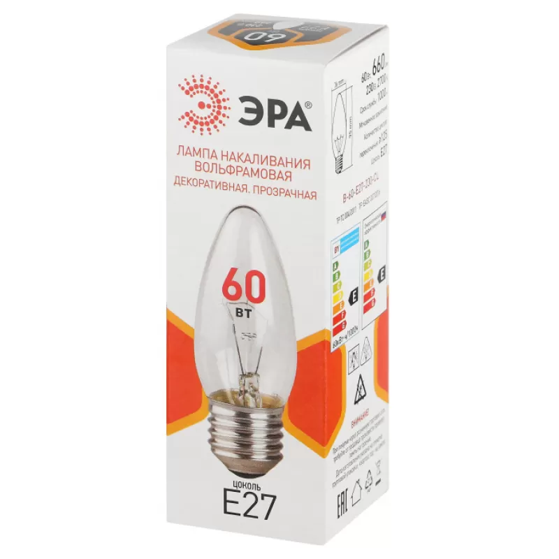 Лампочка накаливания B-60-E27-230-CL ЭРА