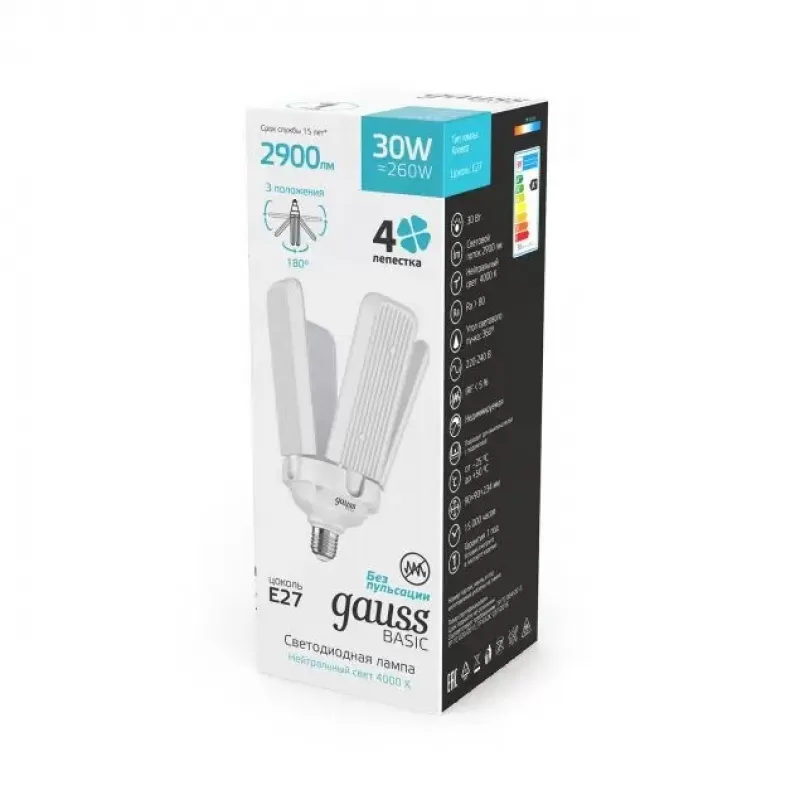 | Цветовая температура, K | 4000 |