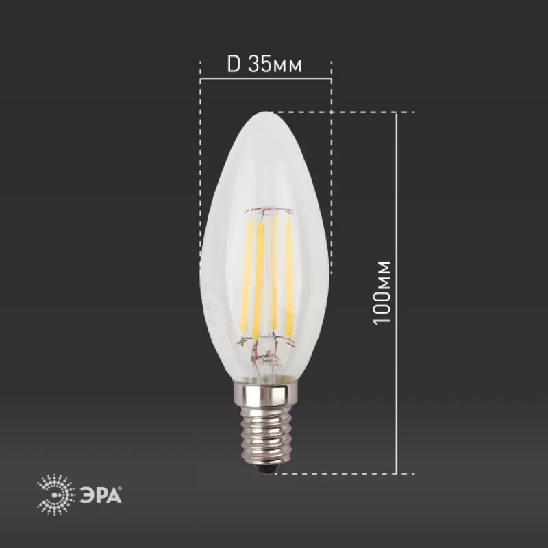 Лампочка светодиодная филаментная F-LED B35-11w-840-E14 ЭРА