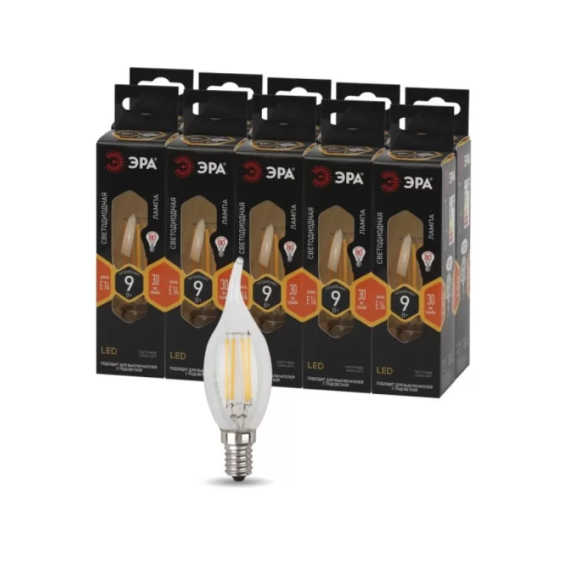 Лампочка светодиодная филаментная F-LED BXS-9W-827-E14 ЭРА
