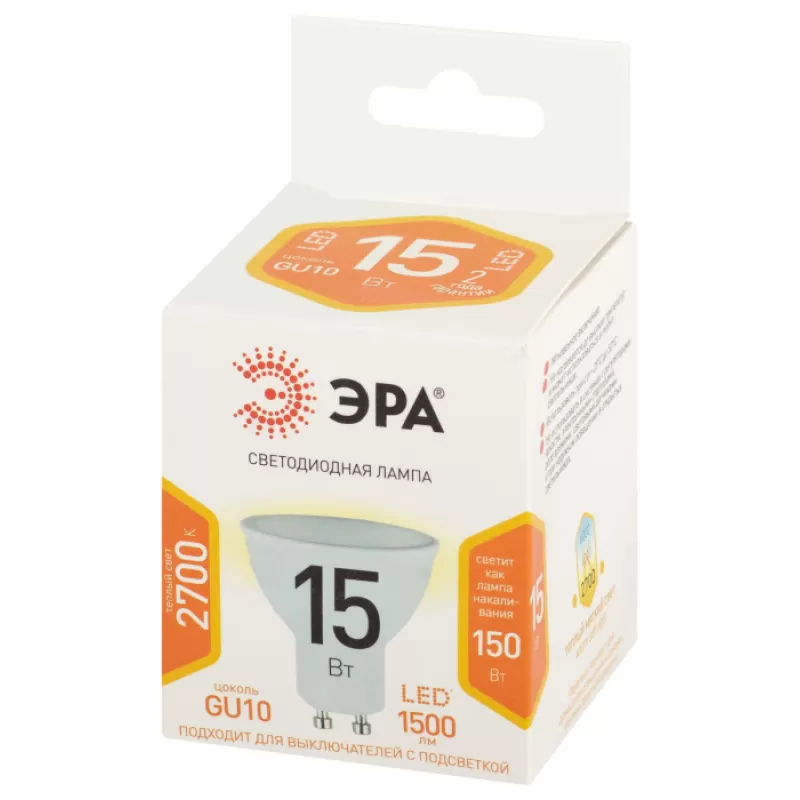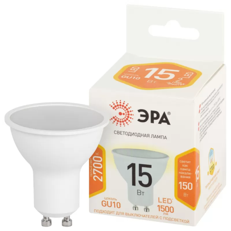 Лампочка светодиодная LED MR16-15W-827-GU10 LED MR16-15W-827-GU10 ЭРА