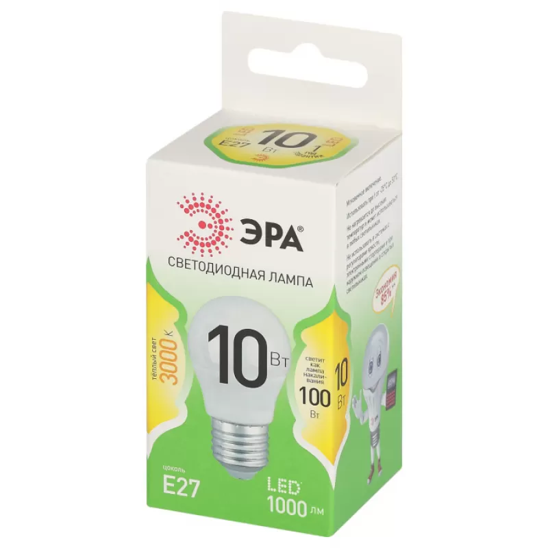 Лампочка светодиодная LED P45-10W-830-E27 GL ЭРА