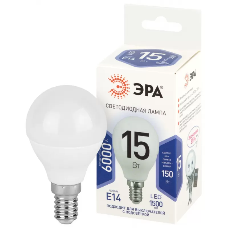 Лампочка светодиодная LED P45-15W-860-E14 LED P45-15W-860-E14 ЭРА