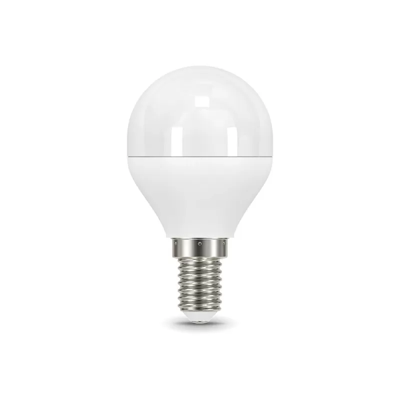 | Светодиодная лампочка в форме шара с цоколем E14 и размерами 87 мм по высоте и диаметром в 45 мм обладает мощностью в 6.5 W, благодаря чему она может осветить 3.3 кв. м. Цветовая температура – 4100 К, т.е. белый свет, подходящий для рабочего настроя (не рекомендуется для детской комнаты). Изделие рассчитано на использование в сети с переменным напряжением в 150-265В. |