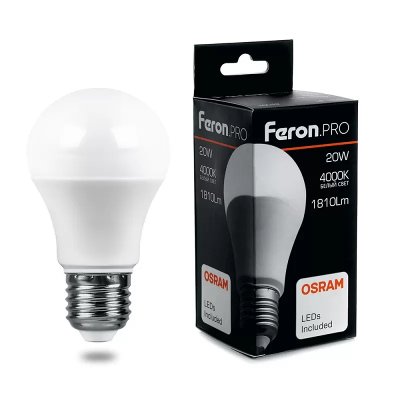| Светодиодная лампочка в форме груши с цоколем E27 и размерами 134 мм по высоте и диаметром в 65 мм обладает мощностью в 20 W, благодаря чему она может осветить 6.7 кв. м. Цветовая температура – 4000 К, т.е. белый свет, подходящий для рабочего настроя (не рекомендуется для детской комнаты). Изделие рассчитано на использование в сети с переменным напряжением в 220-240В. |