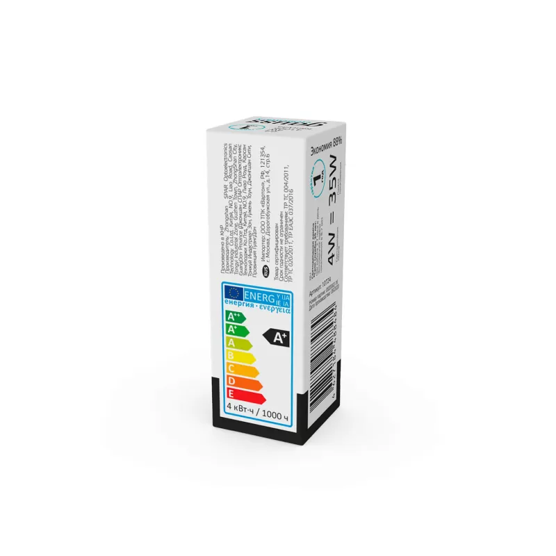 | Светодиодная лампочка в форме кукурузы с цоколем G4 и размерами 45.5 мм по высоте и диаметром в 16 мм обладает мощностью в 4 W, благодаря чему она может осветить 1.3 кв. м. Цветовая температура – 4100 К, т.е. белый свет, подходящий для рабочего настроя (не рекомендуется для детской комнаты). Изделие рассчитано на использование в сети с переменным напряжением в 12В. |