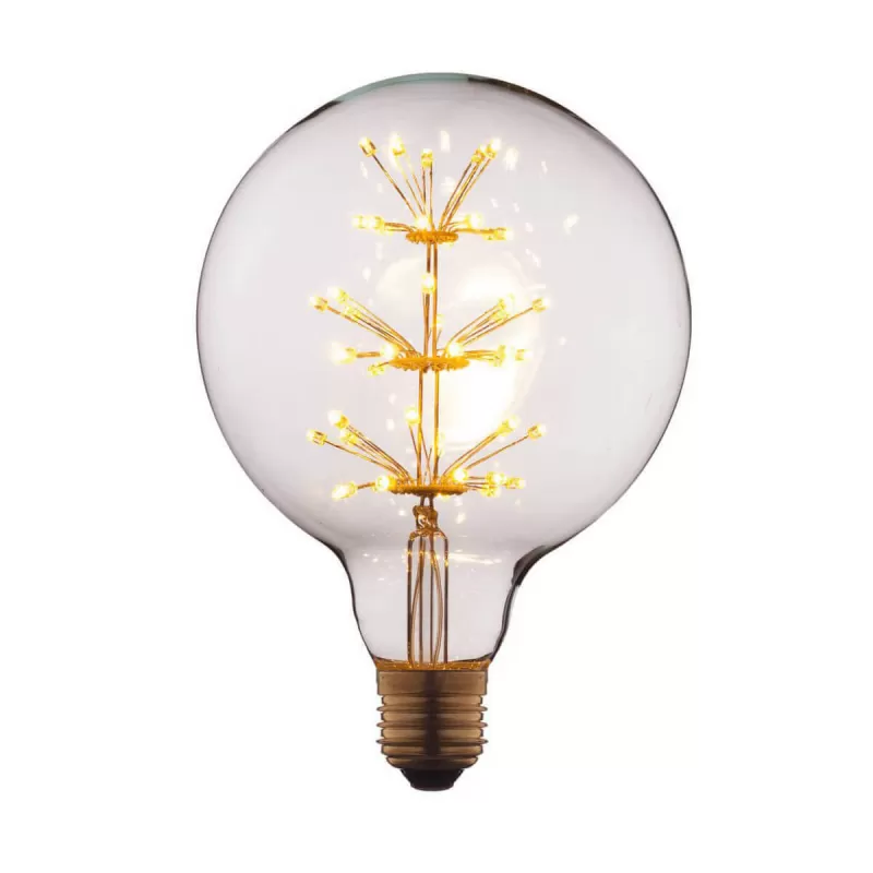 | Светодиодная лампочка в форме шара с цоколем E27 и размерами 170 мм по высоте и диаметром в 125 мм обладает мощностью в 3 W, благодаря чему она может осветить 1.5 кв. м. Изделие рассчитано на использование в сети с переменным напряжением в 220-240В. |