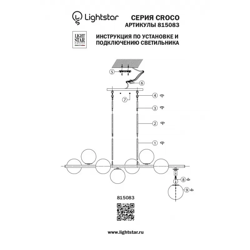 - Стеклянная подвесная люстра Croco 815083 форма шар белая Lightstar
