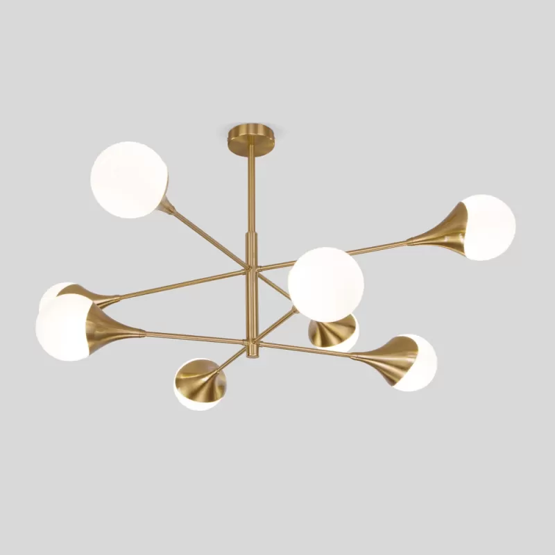 - Стеклянная потолочная люстра Calyx 60168/8 латунь белая форма шар Eurosvet