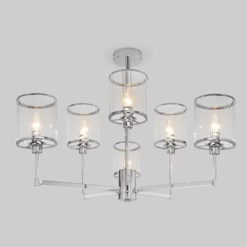 - Стеклянная потолочная люстра Inari 60144/6 хром прозрачная цилиндр Eurosvet