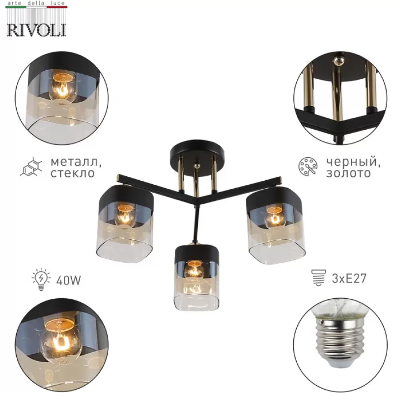 - Стеклянная потолочная люстра Isadora 9133-303 цилиндр черная Rivoli