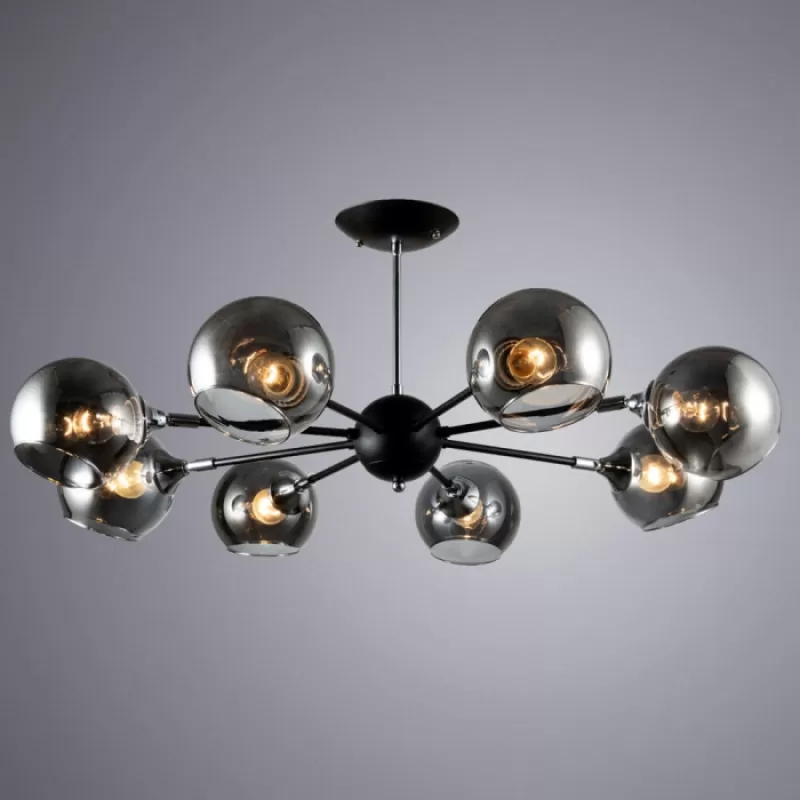- Стеклянная потолочная люстра Lagos A2708PL-8BK форма шар черная Artelamp