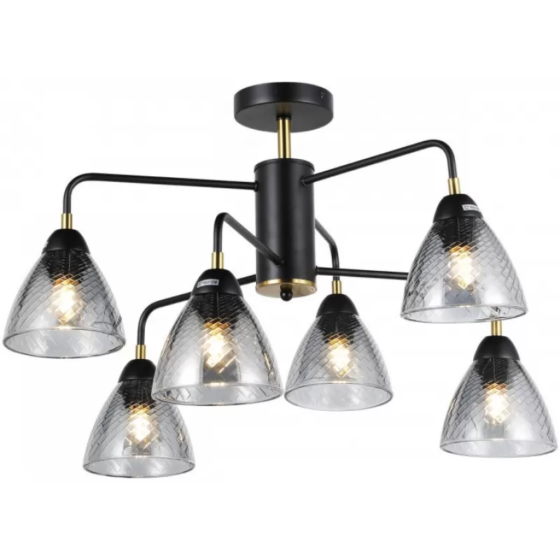 - Стеклянная потолочная люстра MD.74318-6-S-BK+BR прозрачная конус Imex