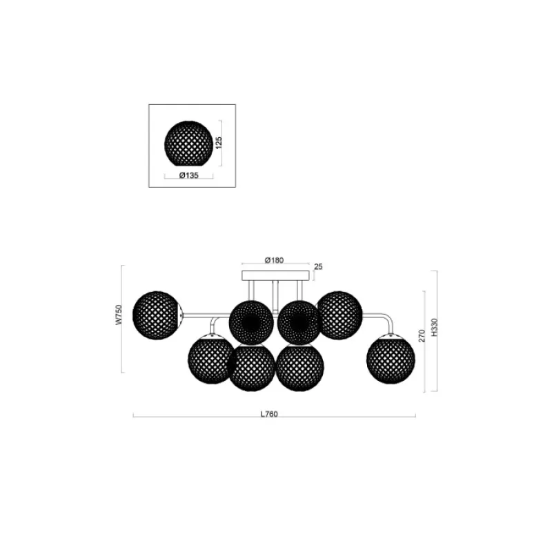 - Стеклянная потолочная люстра Navel FR8016PL-08BBS форма шар цвет янтарь Freya