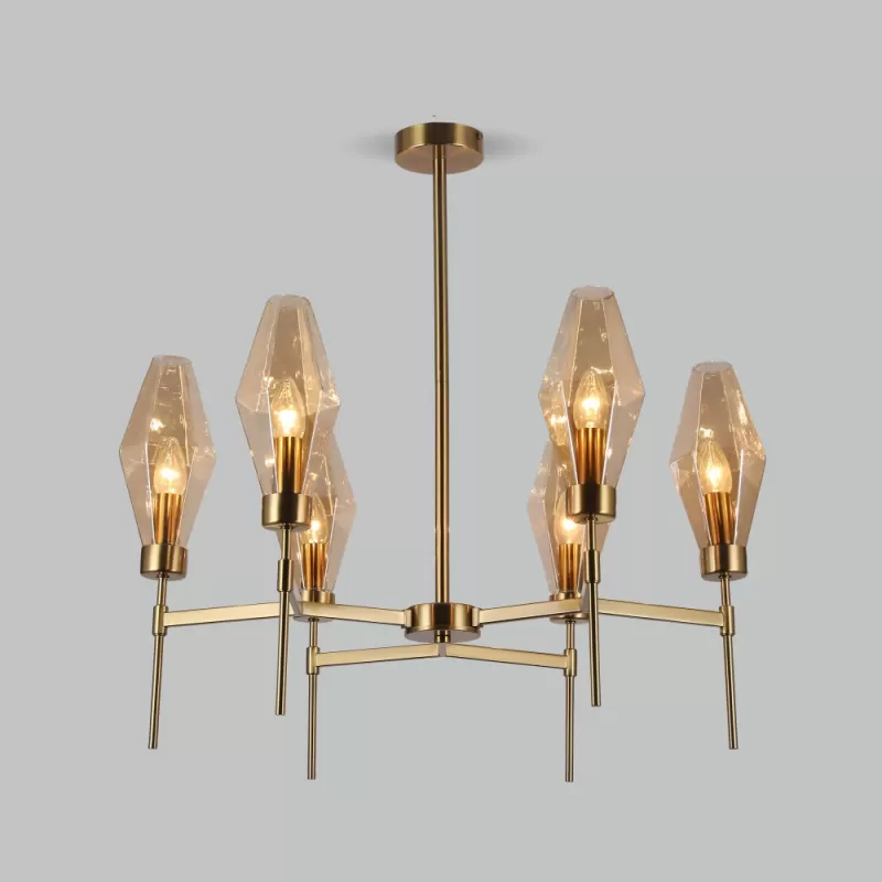 - Стеклянная потолочная люстра Prism 60143/6 латунь цвет янтарь Eurosvet