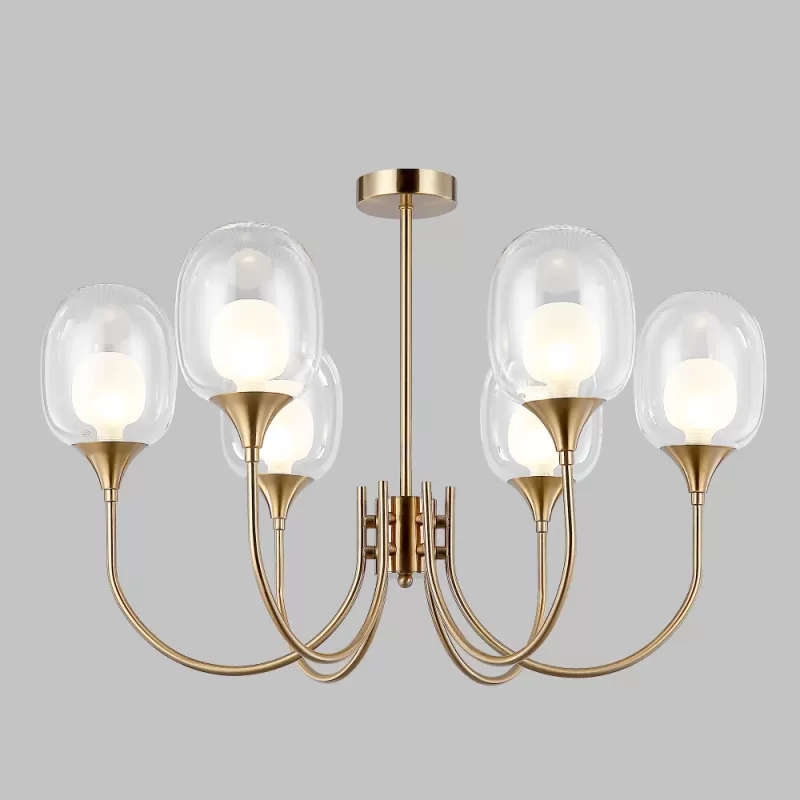- Стеклянная потолочная люстра Spritz 70217/6 латунь прозрачная Eurosvet