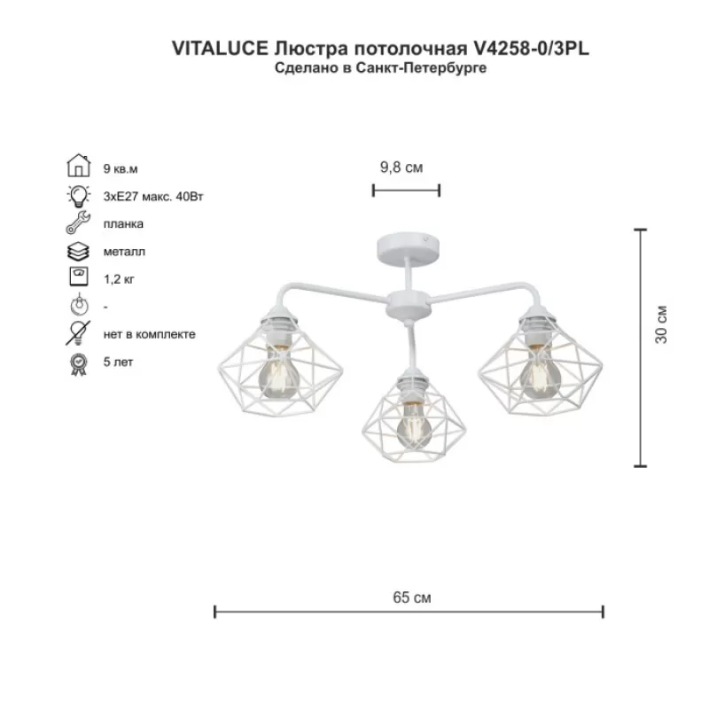 - Потолочная люстра V4258-0/3PL белая Vitaluce