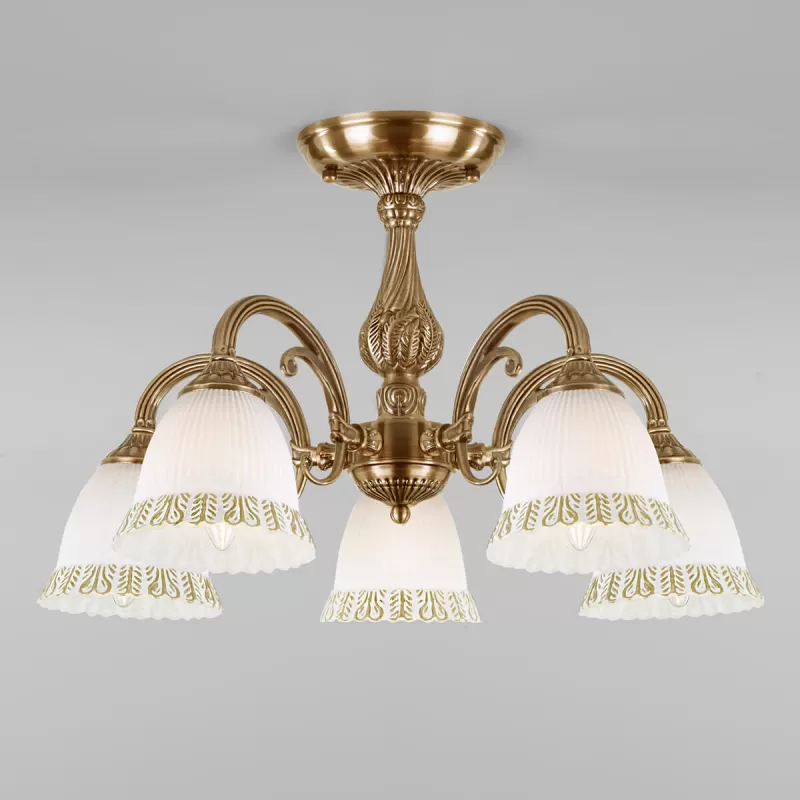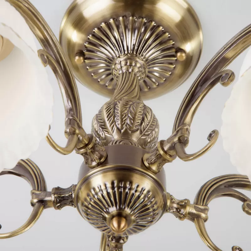 - Стеклянная потолочная люстра Campina 60107/5 античная бронза конус белая Eurosvet