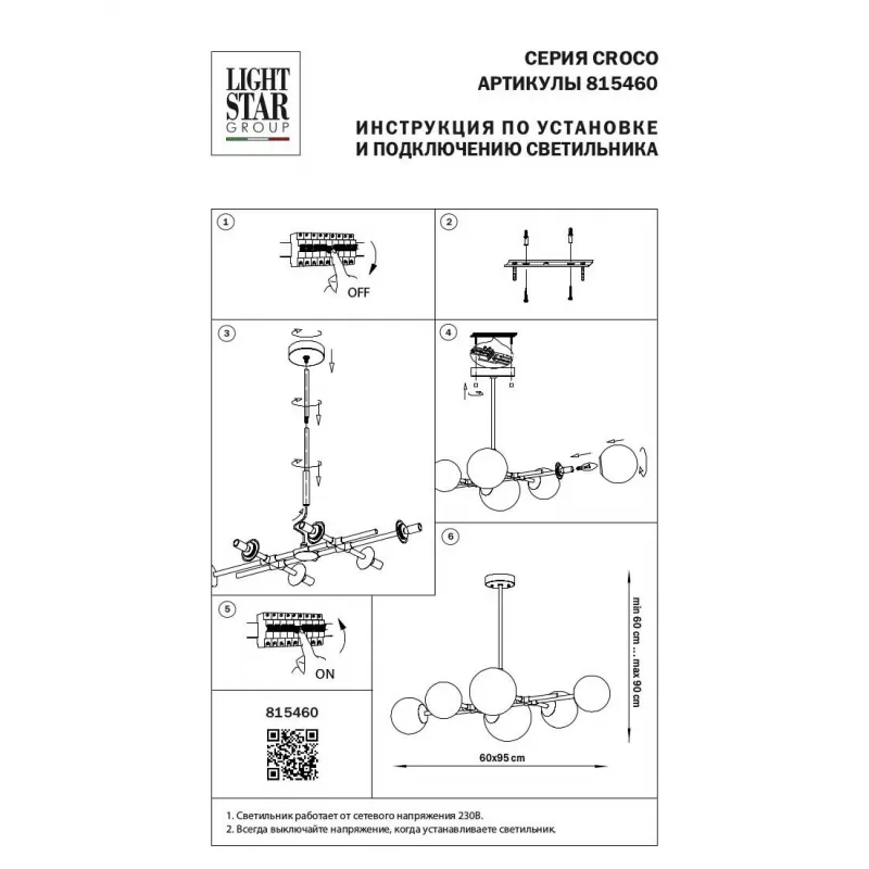 - Стеклянная потолочная люстра Croco 815460 форма шар белая Lightstar