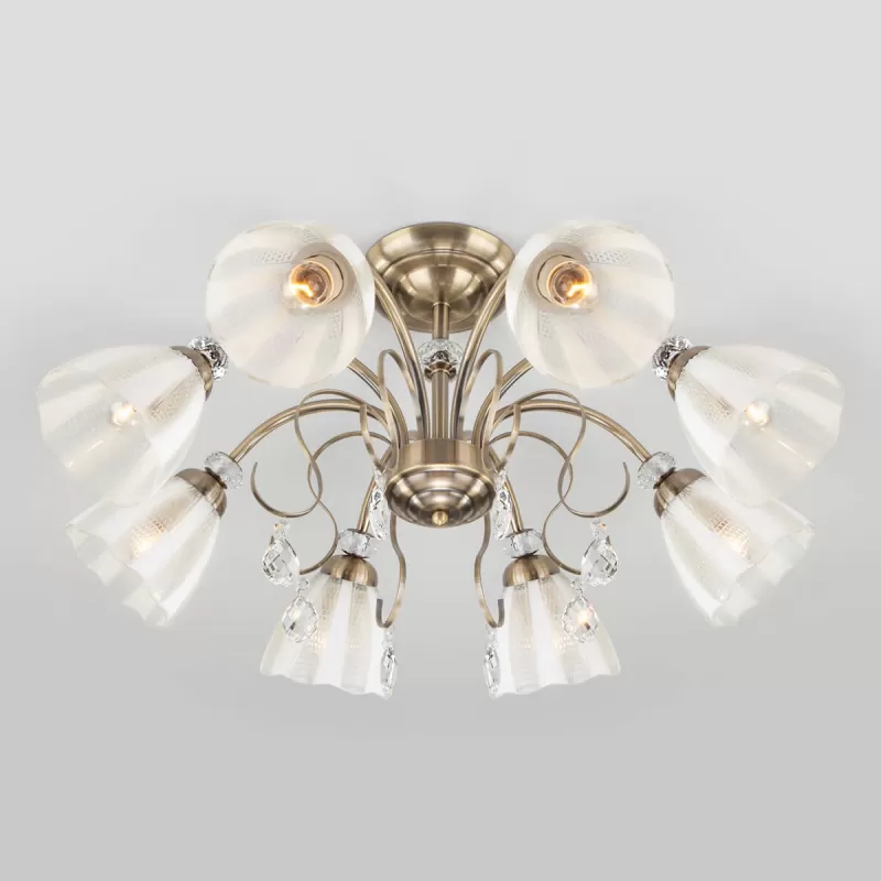 Стеклянная потолочная люстра Floranse 30155/8 античная бронза конус белая Eurosvet