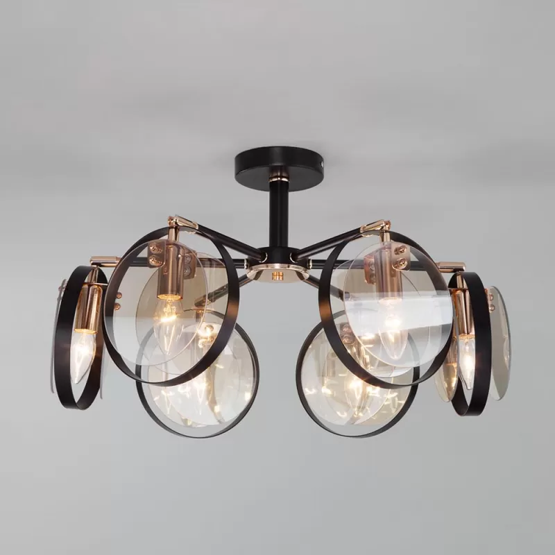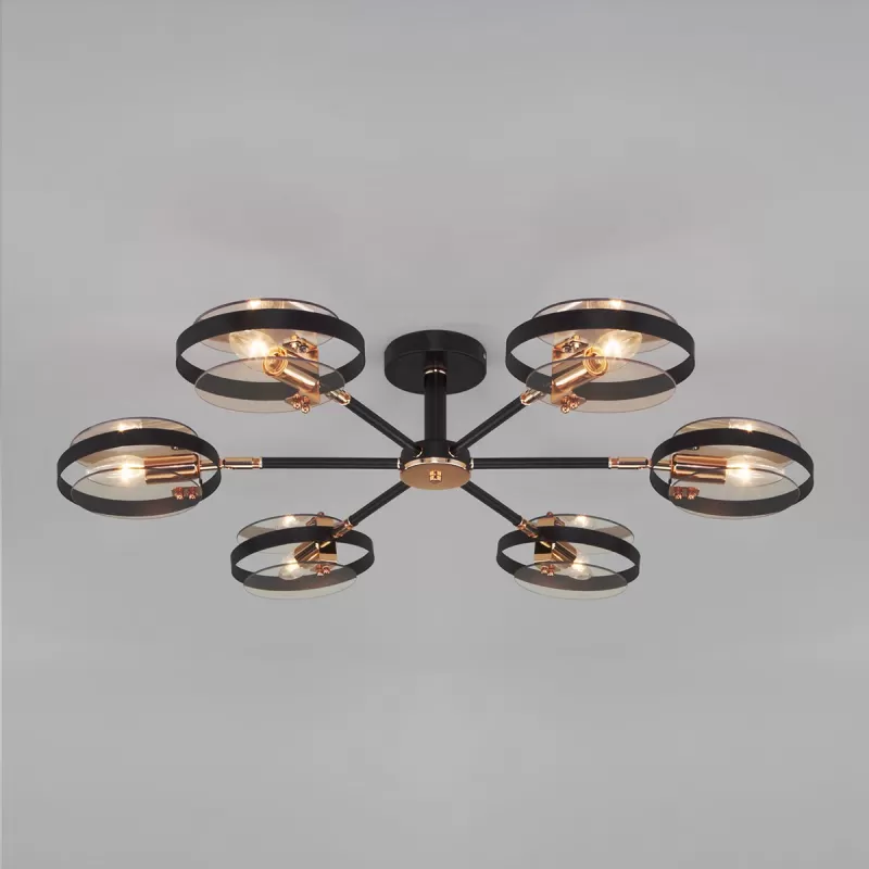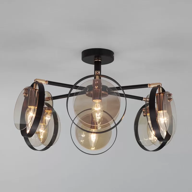 - Стеклянная потолочная люстра Gallo 70121/6 черный цвет янтарь Eurosvet