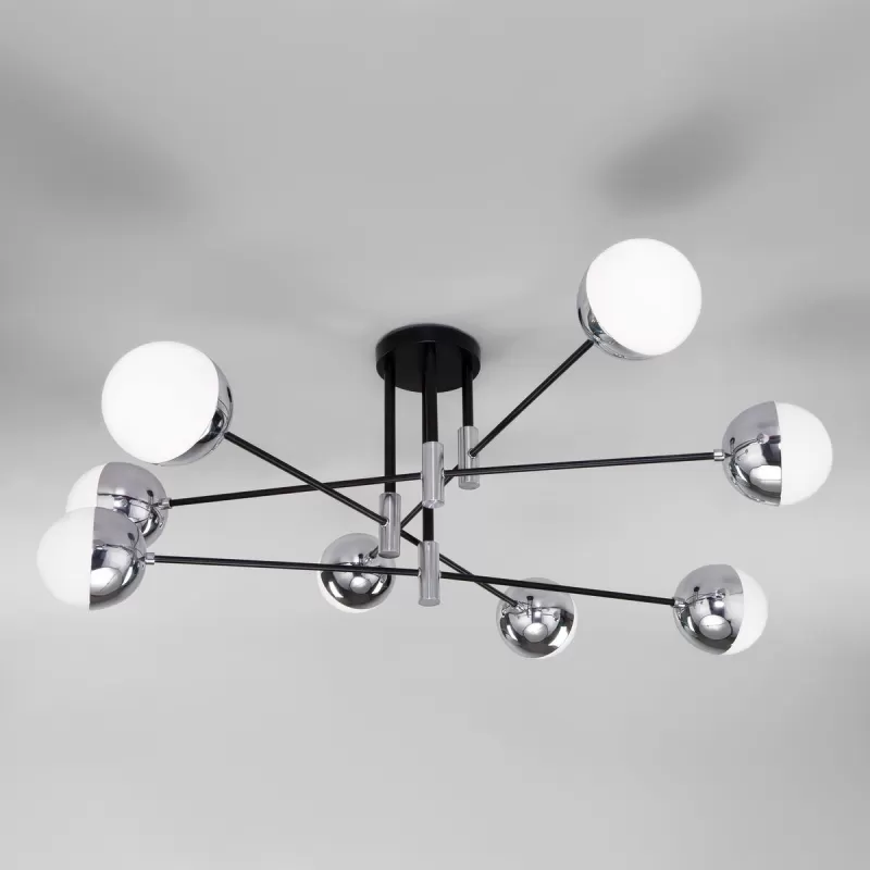 - Стеклянная потолочная люстра Nuvola 70129/8 хром Smart форма шар белая Eurosvet
