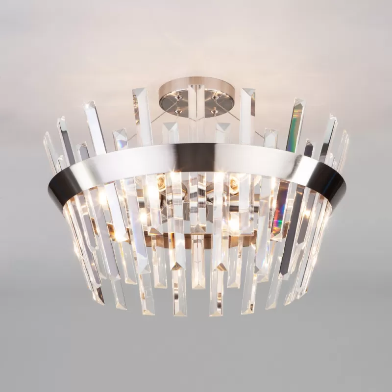 - Хрустальная потолочная люстра Steccato 10111/5 сатин-никель/прозрачный хрусталь Strotskis прозрачная Eurosvet