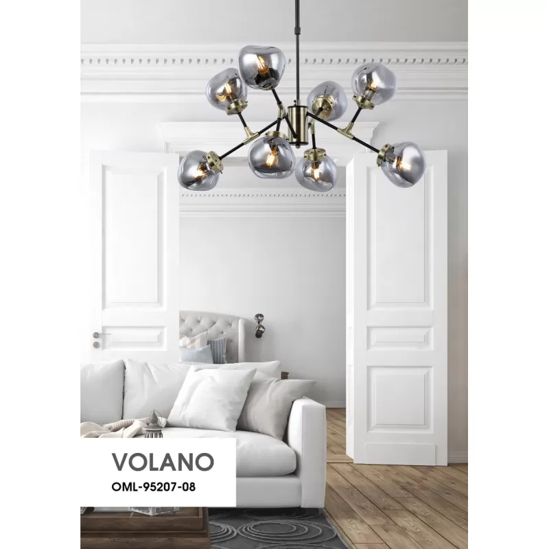 Стеклянная потолочная люстра Volano OML-95207-08 серая форма шар Omnilux