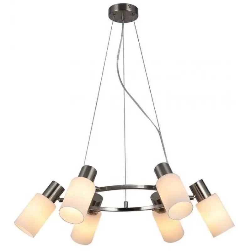 - Стеклянная подвесная люстра Ales OML-69113-06 белая цилиндр Omnilux