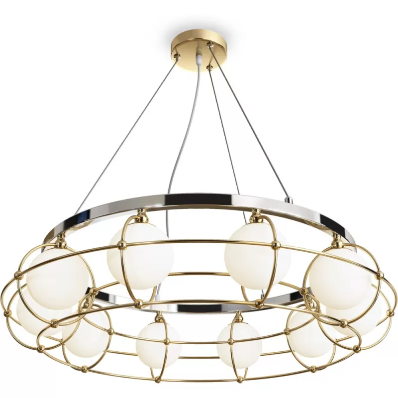 - Стеклянная подвесная люстра Carcass MOD312PL-10GCH форма шар белая Maytoni