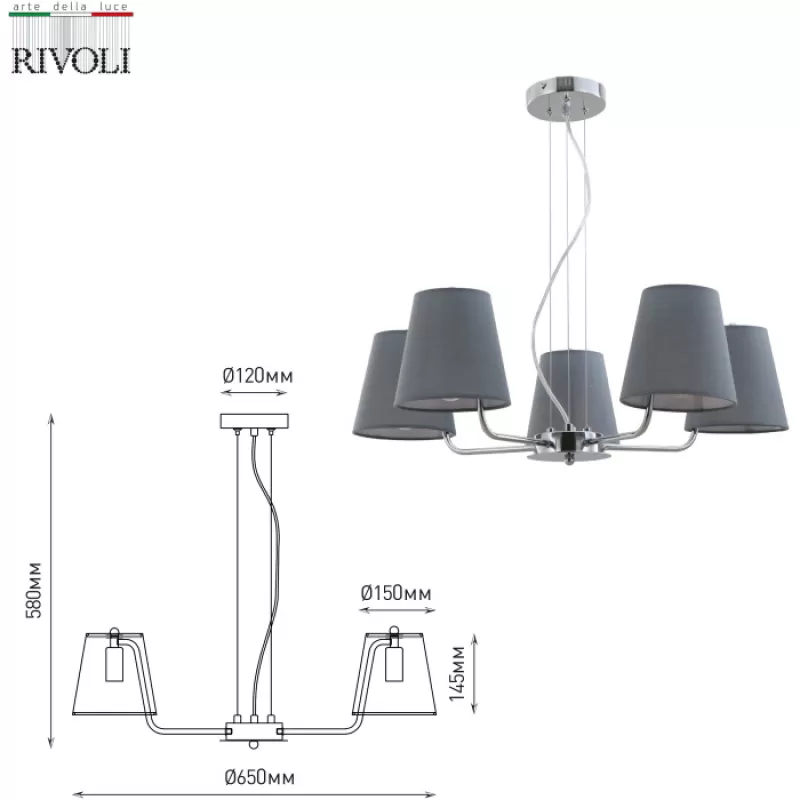 - Подвесная люстра Evie 2087-305 серая конус Rivoli