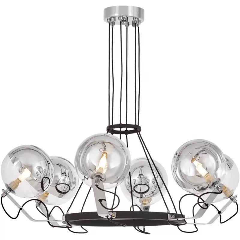 - Стеклянная подвесная люстра Marseo LDP 9110-6 BK+CHR форма шар прозрачная Lumina Deco