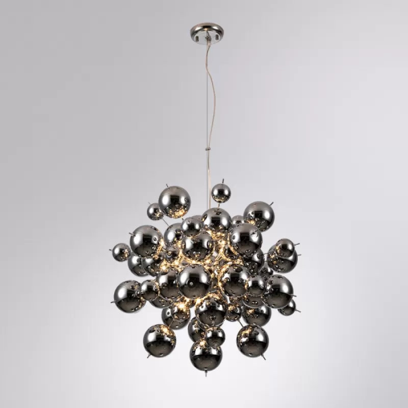 - Стеклянная подвесная люстра Molecule A8313SP-9CC серая форма шар Artelamp