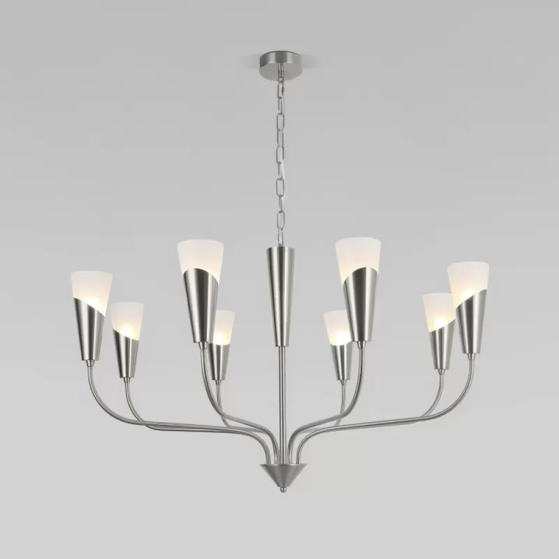 Стеклянная подвесная люстра Rhyton 60167/8 никель конус белая Eurosvet