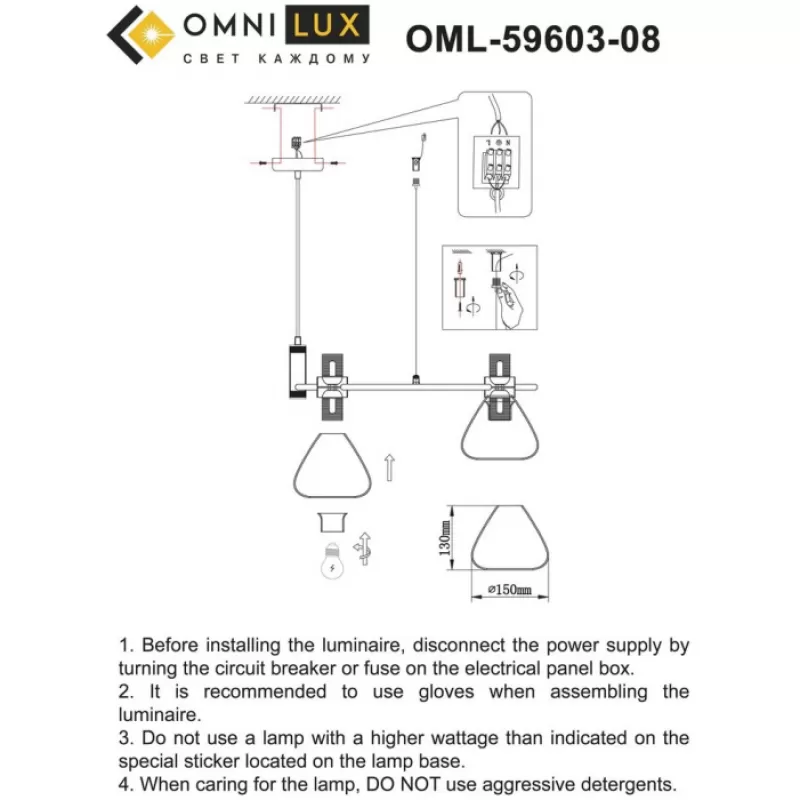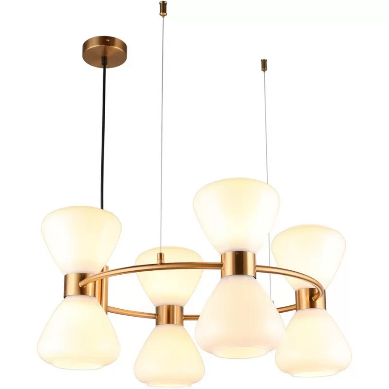 - Стеклянная подвесная люстра Trevasco OML-59603-08 белая конус Omnilux