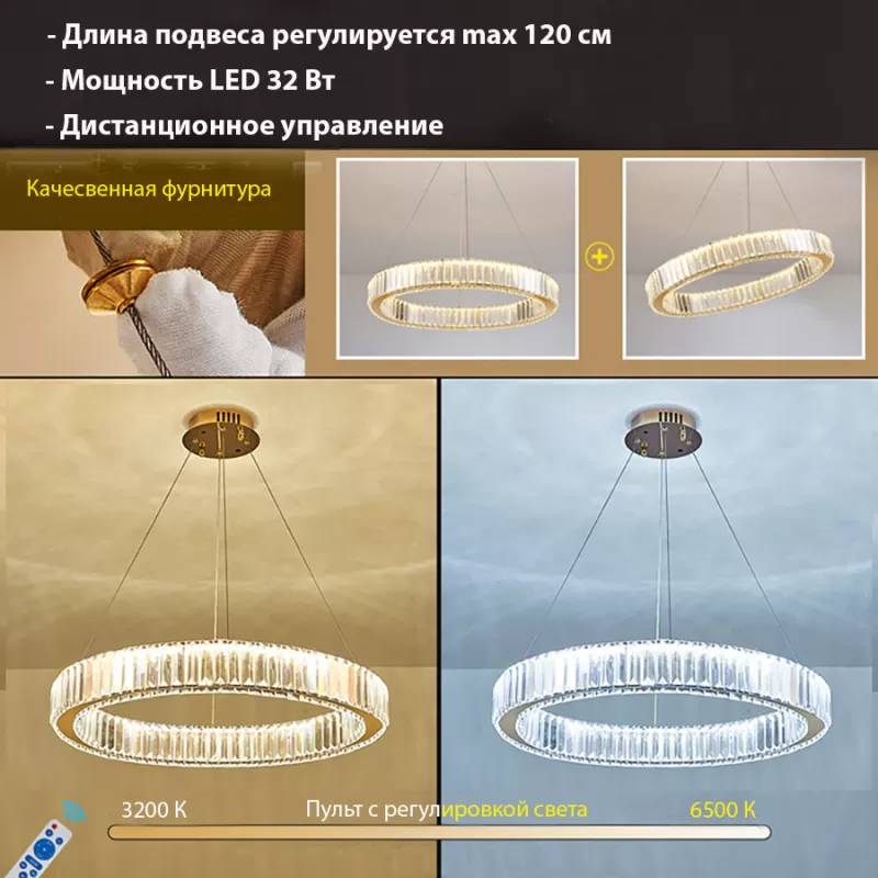 Подвесной светильник Sofitroom. Люстра потолочная современная светодиодная с пультом, качественная фурнитура, стекло К9 - это оптический кристалл с высокой прозрачностью и прочностью. Светильник потолочный светодиодный с диммируемым пультом в комплекте. Мощность led 32 W. Для освещения комнат до 15 кв.м. Диаметр люстры 50 см. Свет: Холодный, тёплый, нейтральный! Имеется ночной режим. Возможность регулирования высоты люстры от потолка от 20 до 120 см. Так же вы можете подвесить плафон под любым углом и регулировать положение подвеса. Пульт с регулировкой света 3200К-6500К. Пульт в комплекте. Такая стильная люстра подойдет для интерьера детской, гостиной, зала, спальни, прихожей или кухни. |