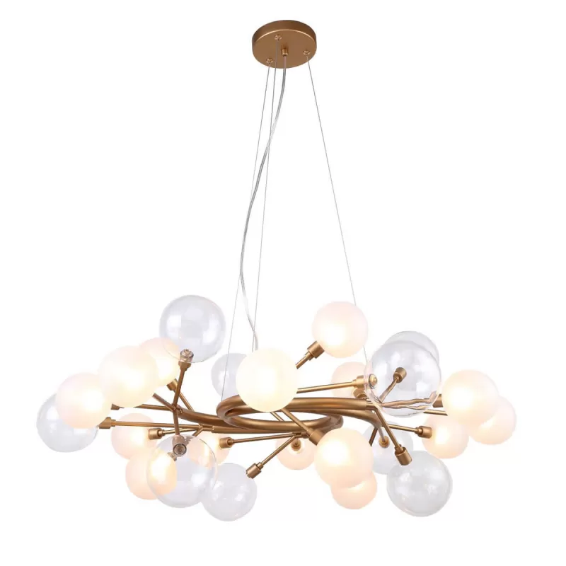 Стеклянная подвесная люстра Babylon 2515-15P форма шар белая Favourite