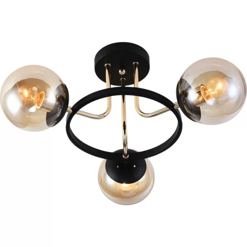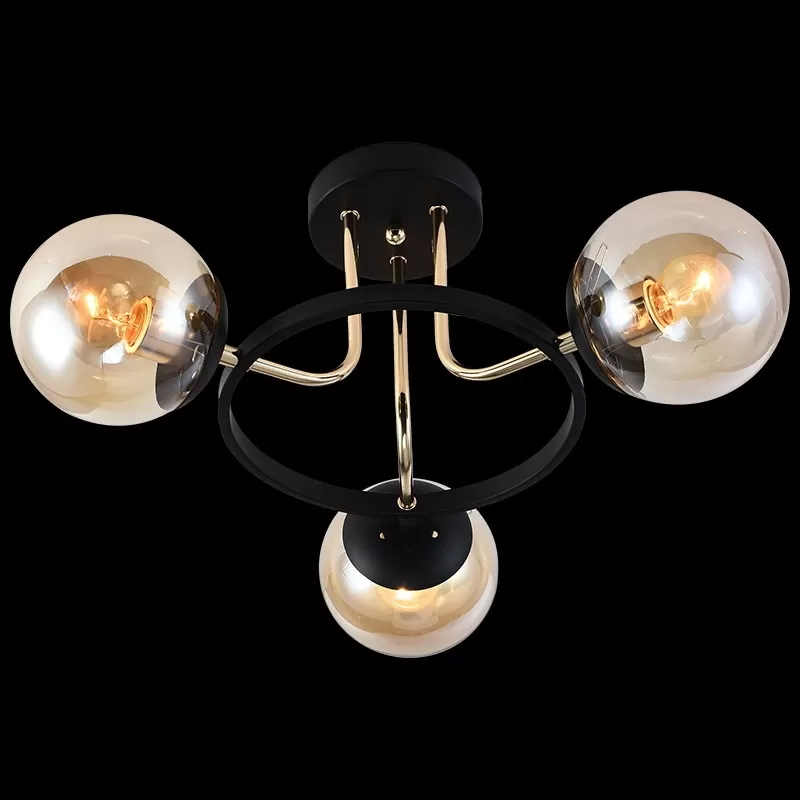 - Стеклянная потолочная люстра 01344-0.3-03 BK+FGD цвет янтарь форма шар
