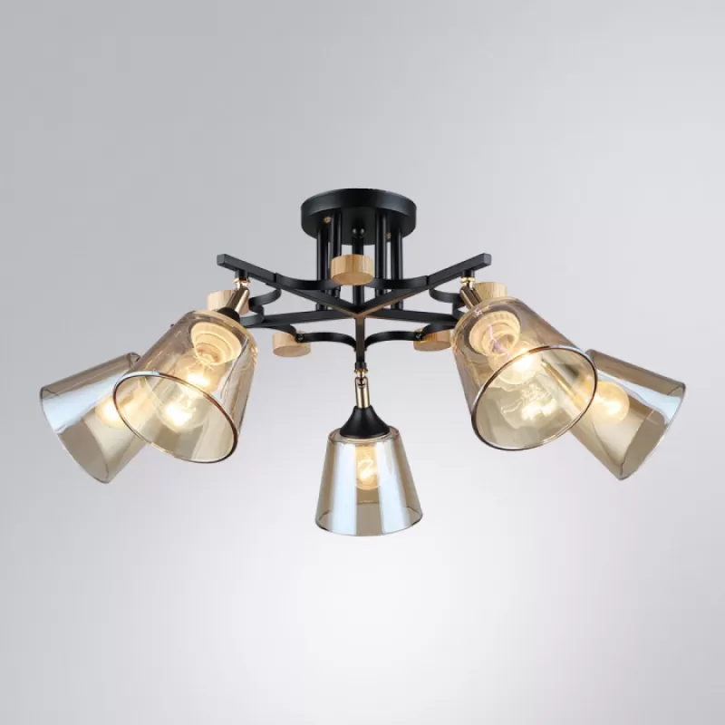 - Стеклянная потолочная люстра Glassy A5078PL-5BK конус цвет янтарь Artelamp