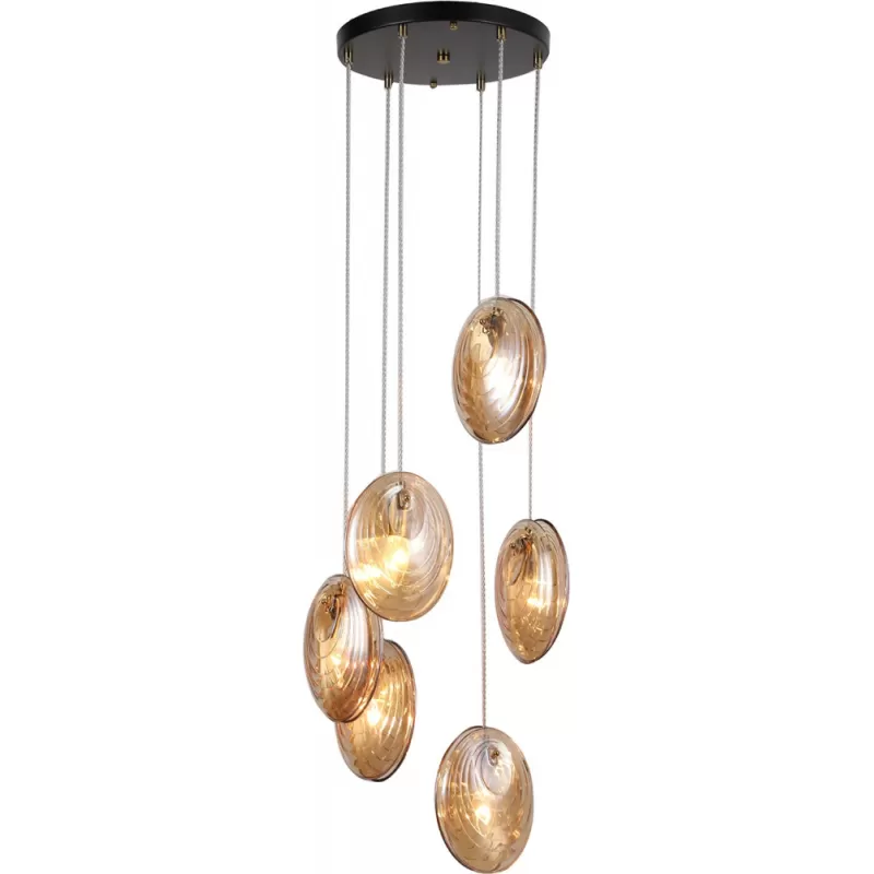 - Стеклянная потолочная люстра Media 4485-6P цвет янтарь F-Promo