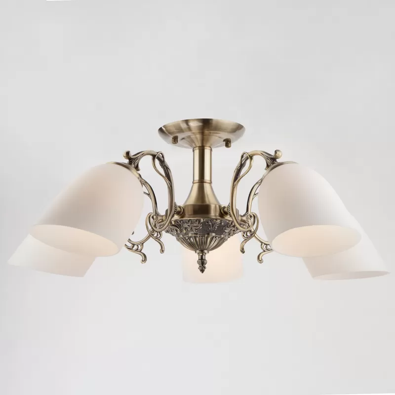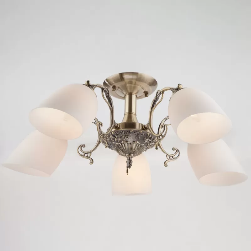 Стеклянная потолочная люстра Ariele 22010/5 античная бронза белая Eurosvet