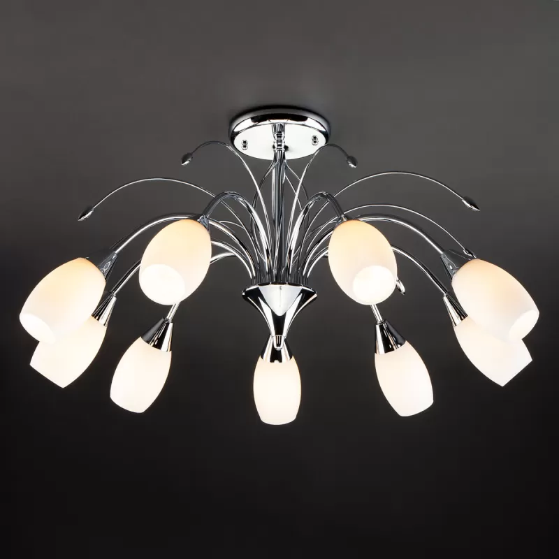 - Стеклянная потолочная люстра Ginevra 22080/9 хром белая Eurosvet