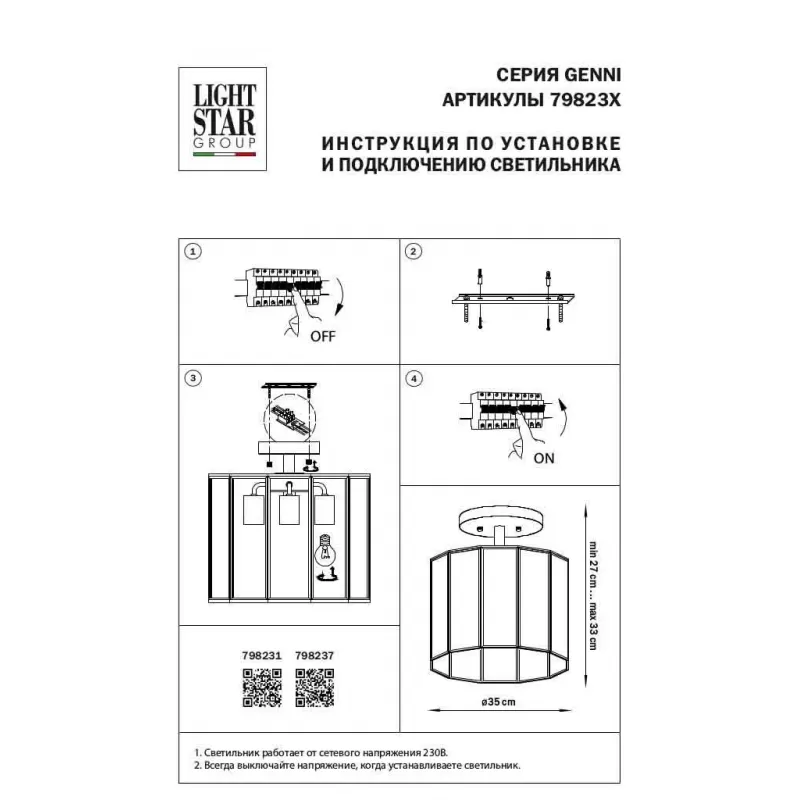 Замечательная люстра на штанге бренда Lightstar 798237 (страна производства Китай), бесспорно, украсит интерьер любой комнаты и сможет полноценно осветить пространство площадью 12. Также на данной странице предлагаем прочитать дополнительные параметры представленной модели. люстра на штанге Lightstar 798237 выполнена преимущественно в таком стиле, как современный, который становится всё более популярным. люстра на штанге с количеством ламп 3 - подходящее решение для стильного оформления пространства. Современные светотехнические устройства бренда Lightstar сконструированы таким образом, что за ними довольно-таки несложно ухаживать. Для этой стильной модели люстры можно выбрать такие лампы как накаливания или led в количестве 3. На представленную модель оригинальной люстры предоставляется гарантия сроком 1 год. Если Вы подбираете вариант освещения для просторного помещения, то также можно подобрать в комплект к данной люстре компактные светильники или торшер. Позвоните или напишите нам, и наши менеджеры обязательно помогут определиться с выбором. Китайский люстра в стиле современный из коллекции Genni завоевывает все большую популярность у наших покупателей, и не зря, ведь это качественный осветительный прибор! Люстра на штанге Lightstar 798237 черного цвета общей мощностью 120 Вт поможет осветить помещение размером до 35 квадратных метров, а стеклянный плафон в форме цилиндра украсит потолок и создаст атмосферу уюта в любом интерьере. Вы можете купить люстру на штанге Lightstar 798237 в каталоге интернет-магазина SofitRoom" с доставкой по Москве и другим городам России. Также на странице товара доступны отзывы, фото и технические характеристики." |