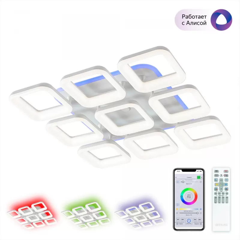- Потолочная люстра Паркер Смарт CL225A290E квадратная белая Citilux
