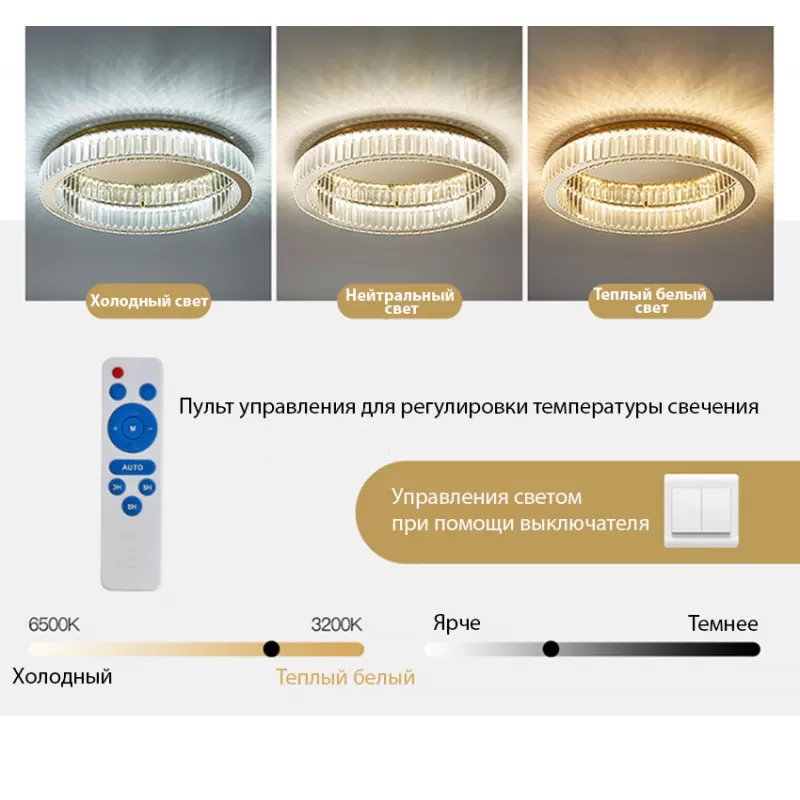 Подвесная люстра Elegant потолочный. Люстра потолочная современная светодиодная с пультом управления, качественная фурнитура, стекло К9 - это оптический кристалл с высокой прозрачностью и прочностью. Светильник потолочный светодиодный с диммируемым пультом в комплекте. Мощность led 50 Вт. Для освещения комнат до 12-16 кв.м. Диаметр люстры 50 см. Свет: Холодный, тёплый, нейтральный! Имеется ночной режим. Пульт с регулировкой света 3200 К-6500К. Пульт в комплекте. Такая стильная люстра подойдет для интерьера детской, гостиной, зала, спальни, прихожей или кухни. |