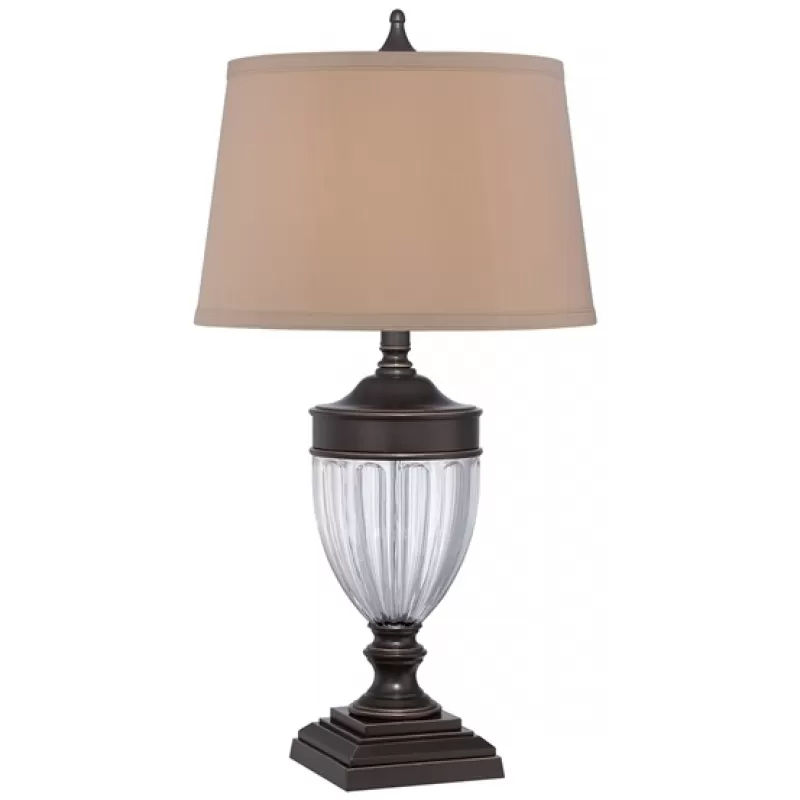 - Интерьерная настольная лампа Dennison QZ-DENNISON-PB конус бежевый Quoizel