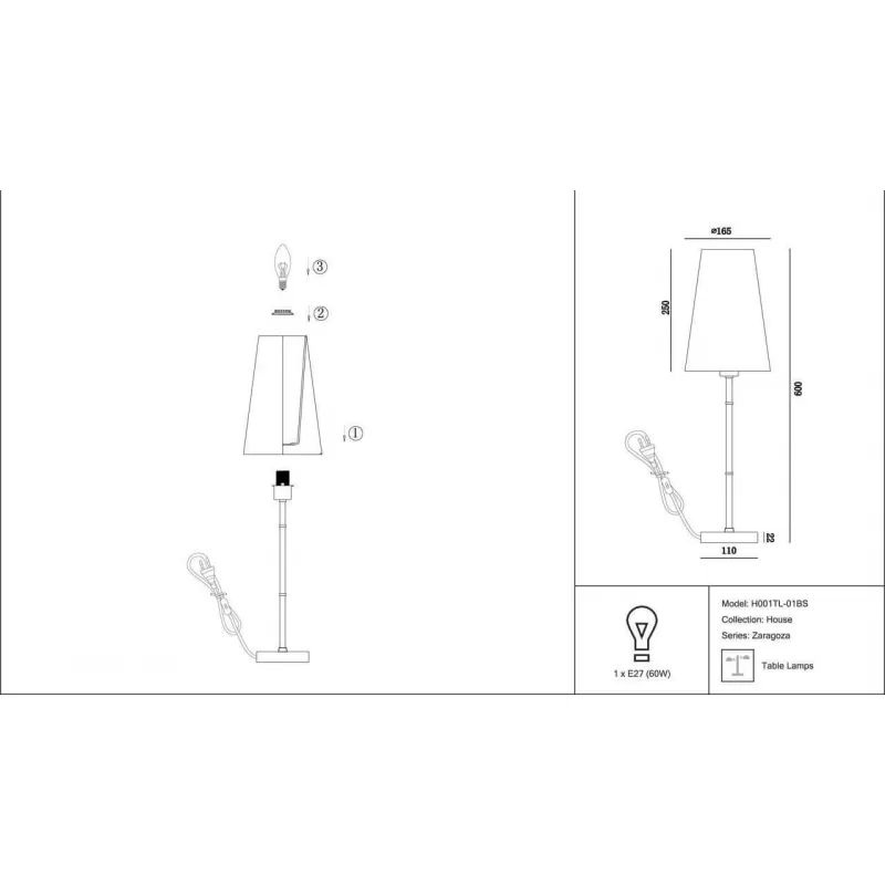 - Интерьерная настольная лампа Zaragoza H001TL-01BS белый конус Maytoni
