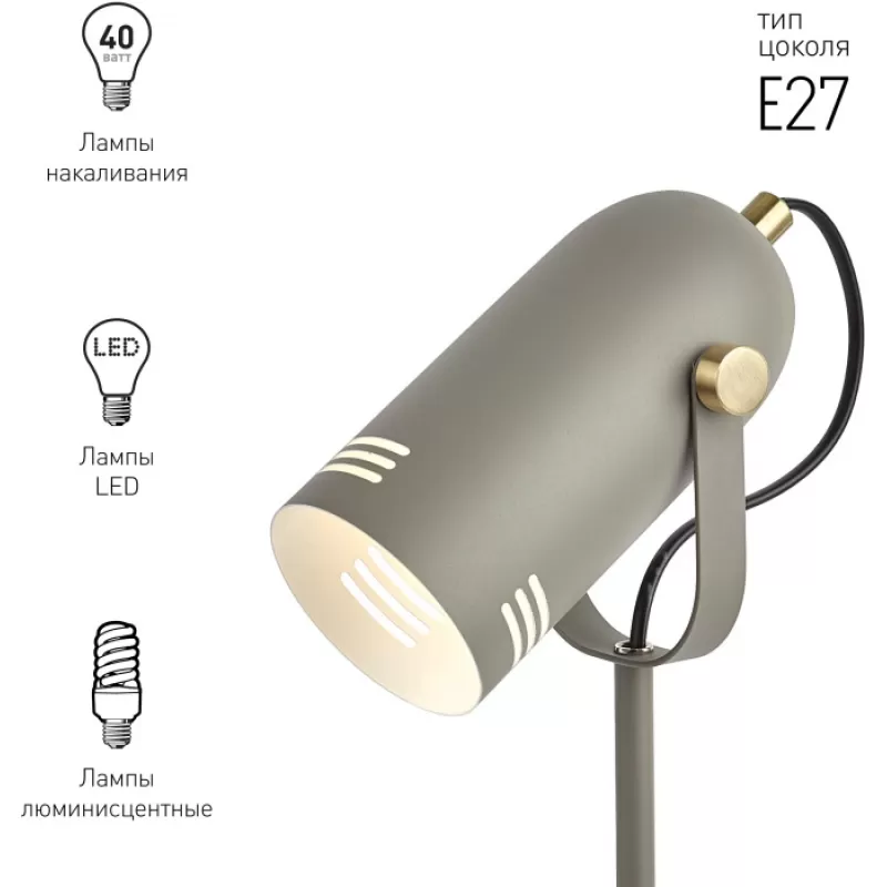 - Офисная настольная лампа N-117-Е27-40W-GY серый цилиндр ЭРА
